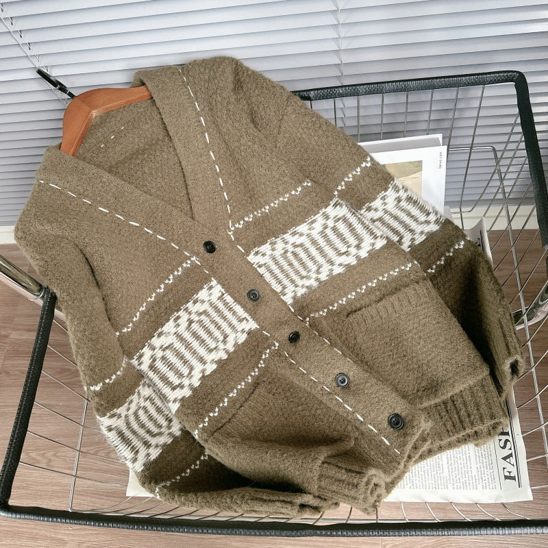 Elevate your autumn-winter wardrobe with this handmade stitch V-neck cardigan for women. Featuring a loose fit, soft knitted fabric, and French lazy style, it’s perfect for casual layering, cozy daily wear, or chic autumn outfits.