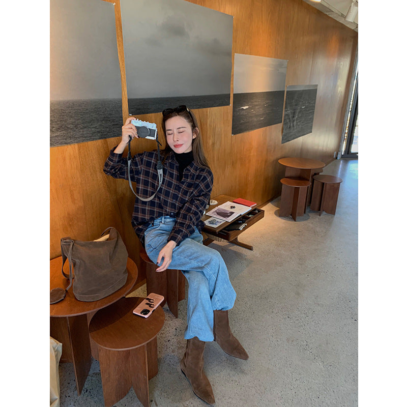 Step into timeless style with these versatile mid-calf boots, available in black leather and brown suede. Featuring a pointed toe and low heel, these boots offer both comfort and a vintage, fashion-forward look. The wide calf design ensures a relaxed fit while still maintaining a sleek, flattering silhouette. Whether you're pairing them with skirts, dresses, or jeans, these retro-inspired combat boots are perfect for adding an edgy touch to any outfit. Comfortable yet stylish, these short boots are an essential addition to your fall and winter wardrobe.