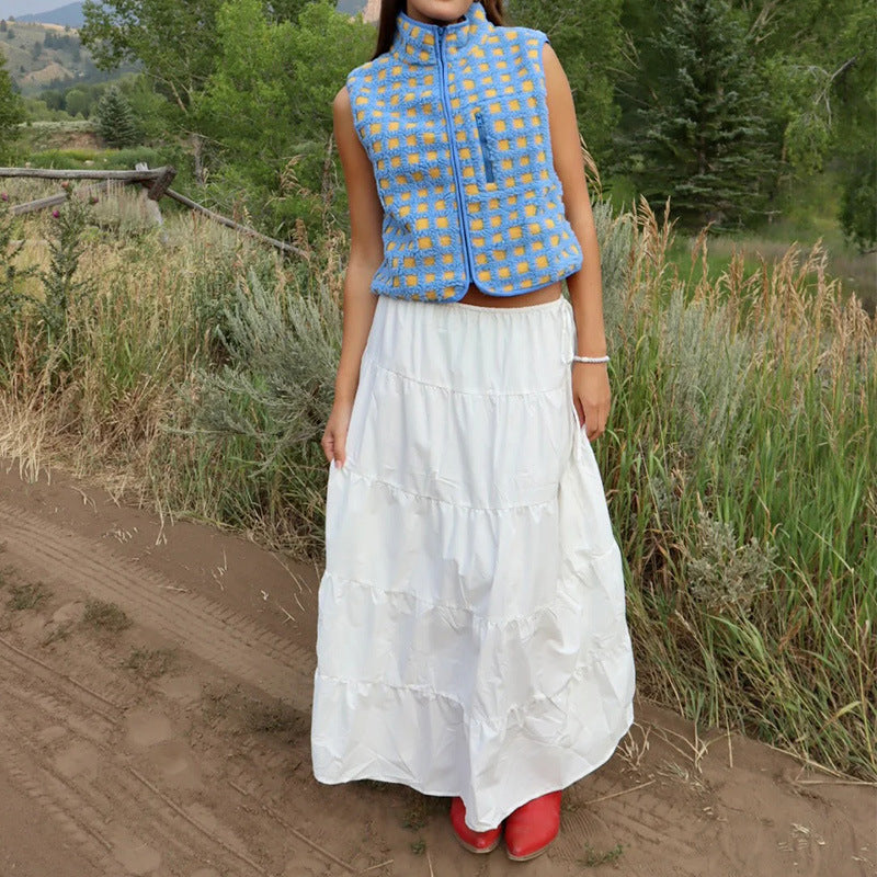 Plaid Fleece Vest for Women | New Sleeveless Stand Collar Vest