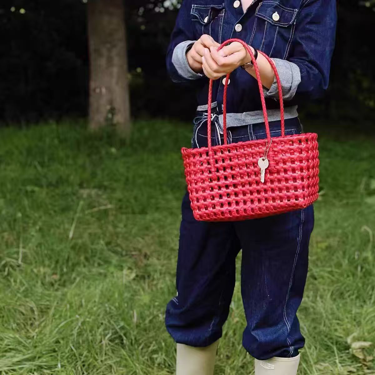 Keywords: hollow woven bag, straw tote bag, French basket bag, beach shoulder bag, summer handbag, vacation tote