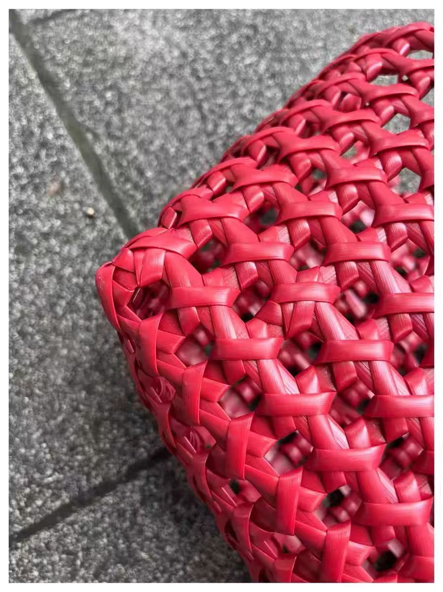 Design: Hollow weave, shoulder strap & top handle, basket style