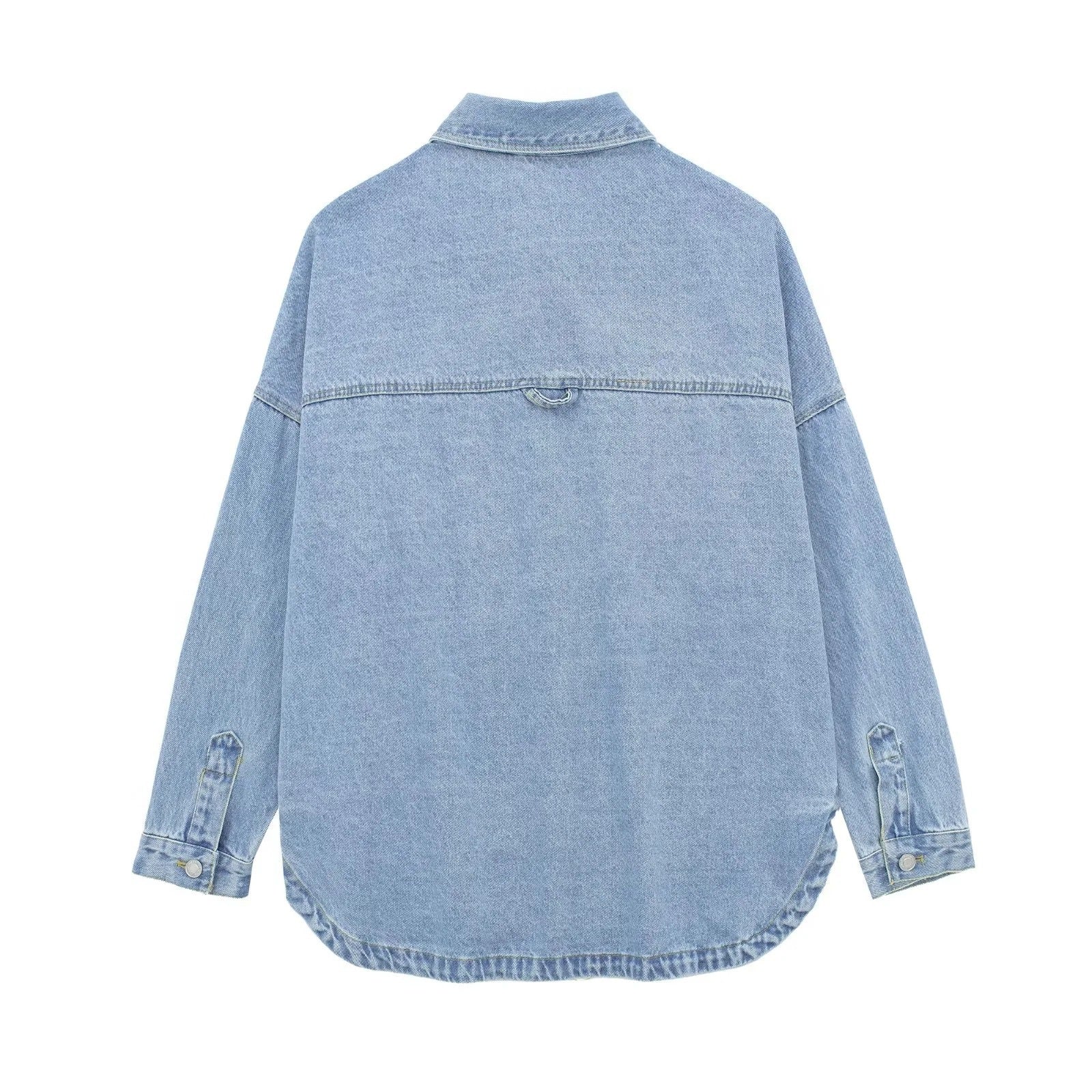 Women’s New Denim Shirt Jacket – Long Sleeve Turn-Down Collar Outerwear, Fashionable